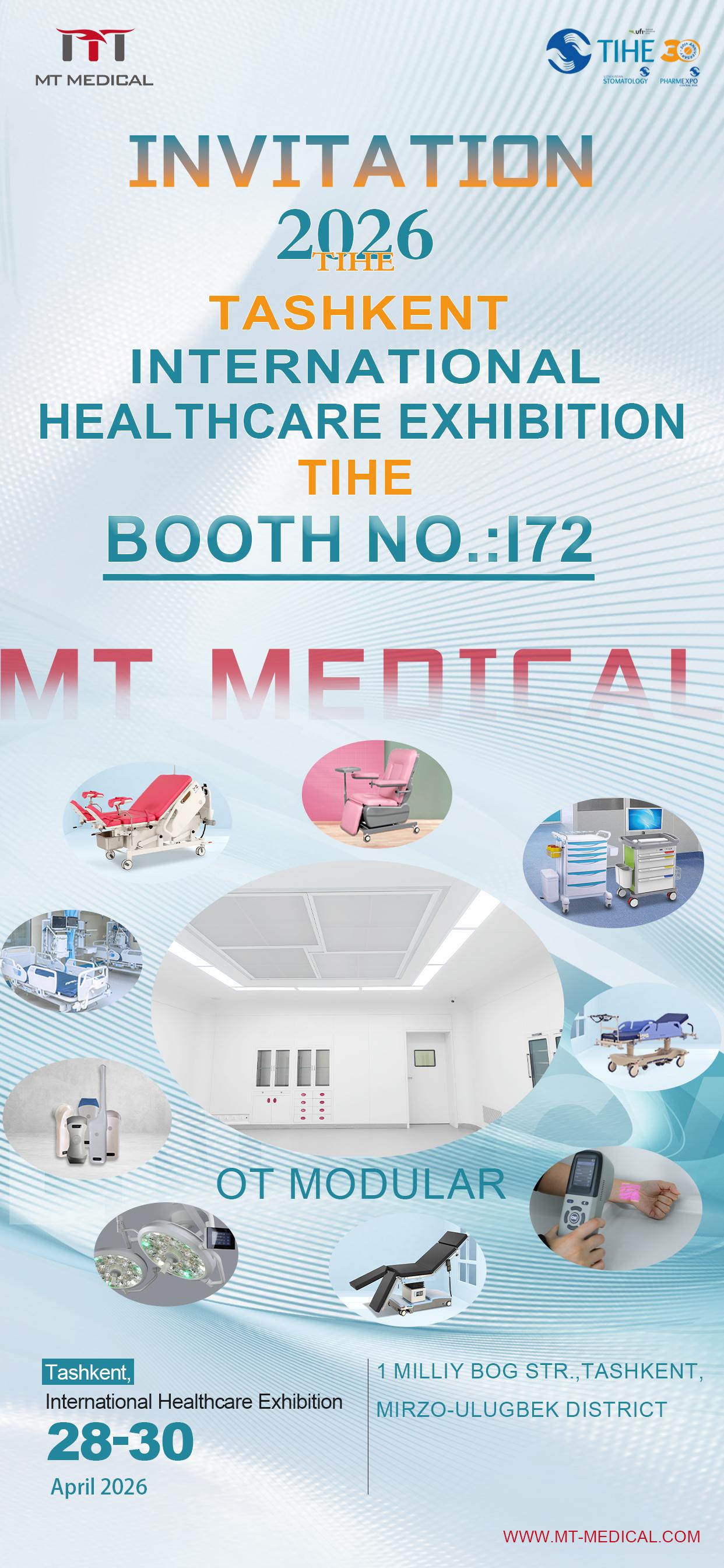 MT Medical 将参加于 2026 年 4 月 28 日至 30 日在塔什干米尔佐乌卢格别克区举行的 TIHE 展会。MT Medical 将在 I72 号展位展出其全系列医疗设备和集成式模块化手术室解决方案。