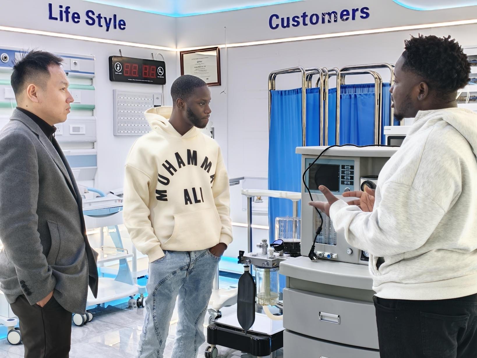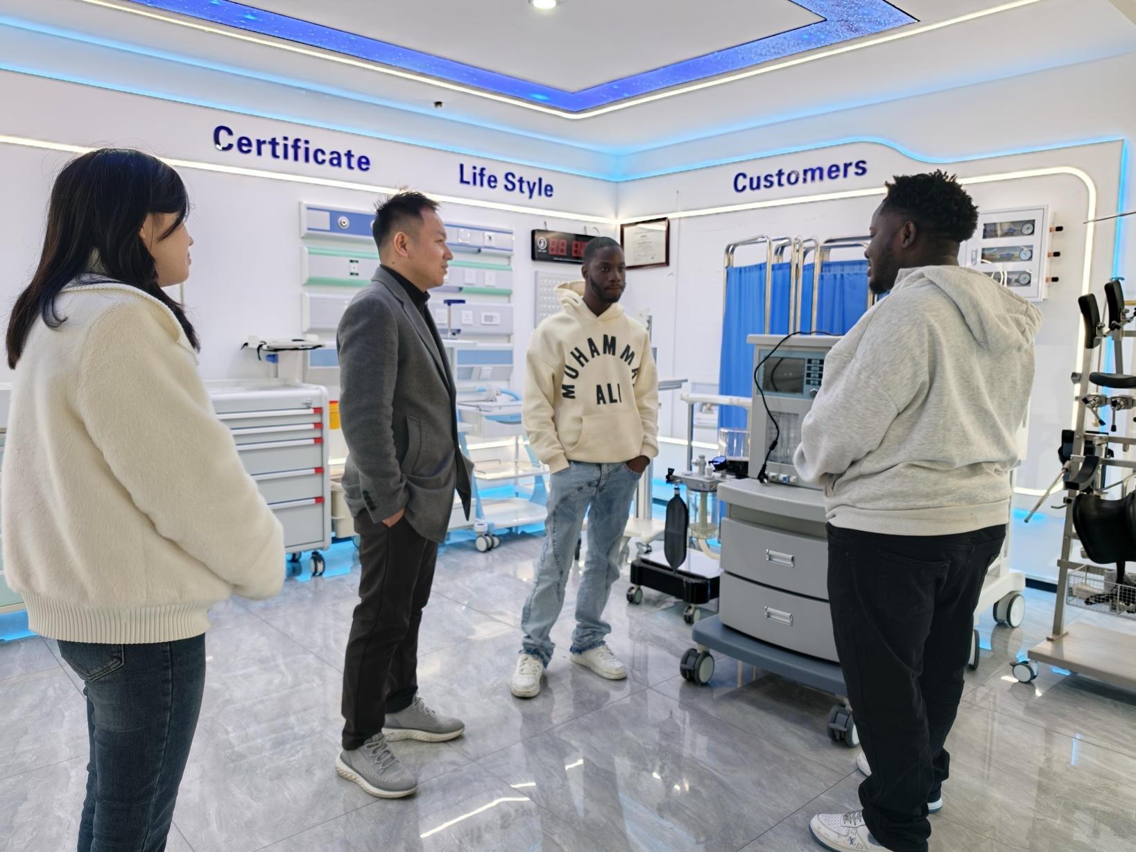 Clients visited our company's medical equipment exhibition hall and conducted a systematic on-site inspection of the company's full range of products.
