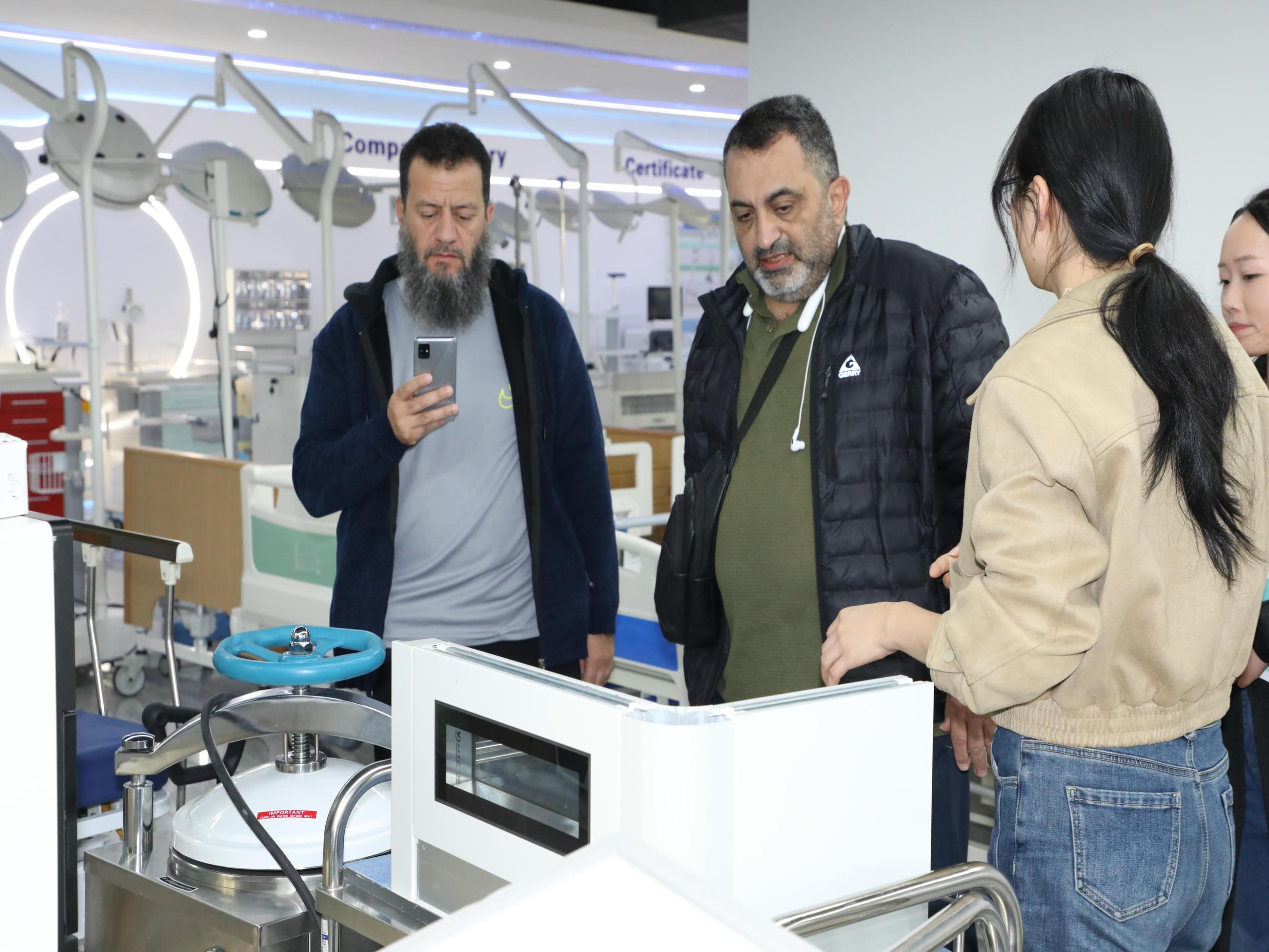 近日,来自约旦的客户到访我司参观交流,重点考察医疗推车与灭菌器等核心产品。现场我们围绕医院物流与感染控制场景进行功能演示;在会议室,客户认真翻阅产品手册,就配置选择、容量与效率、可靠性及维护便捷性等话题展开深入交流。公司同事 Dunia 全程热情接待,系统讲解产品要点与典型应用。我们坚持“以临床价值为中心、以质量与合规为底线”的理念,致力于为中东市场伙伴提供稳定、可持续的供应与服务。双方就样机测试与采购计划达成初步共识。